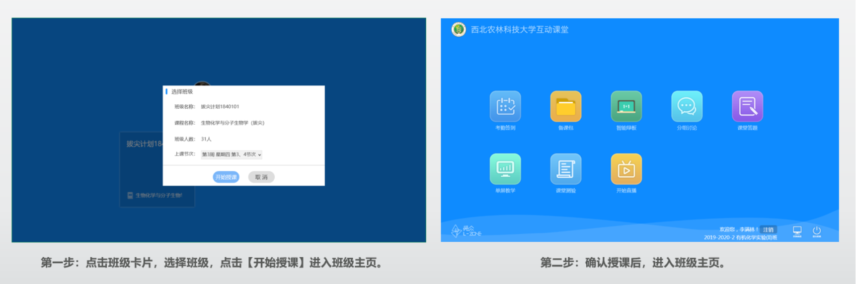 4、登录成功后,教师开始授课,当存在上课信息时,直接进入班级主页。无需选择授课班级。