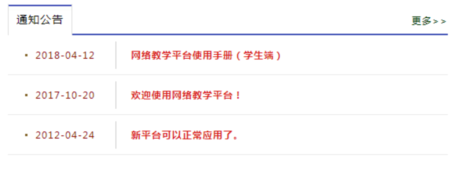 学生用户登录平台后,即可在页面中部看到“通知公告”。