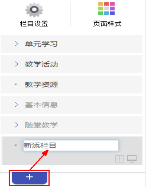 向下扩展按钮;用于自定义栏目的添加,如若创建与固定栏目(“基本信息”、“单元学习”、“随堂教学”等)平级的栏目,点击即可向下新增。 |