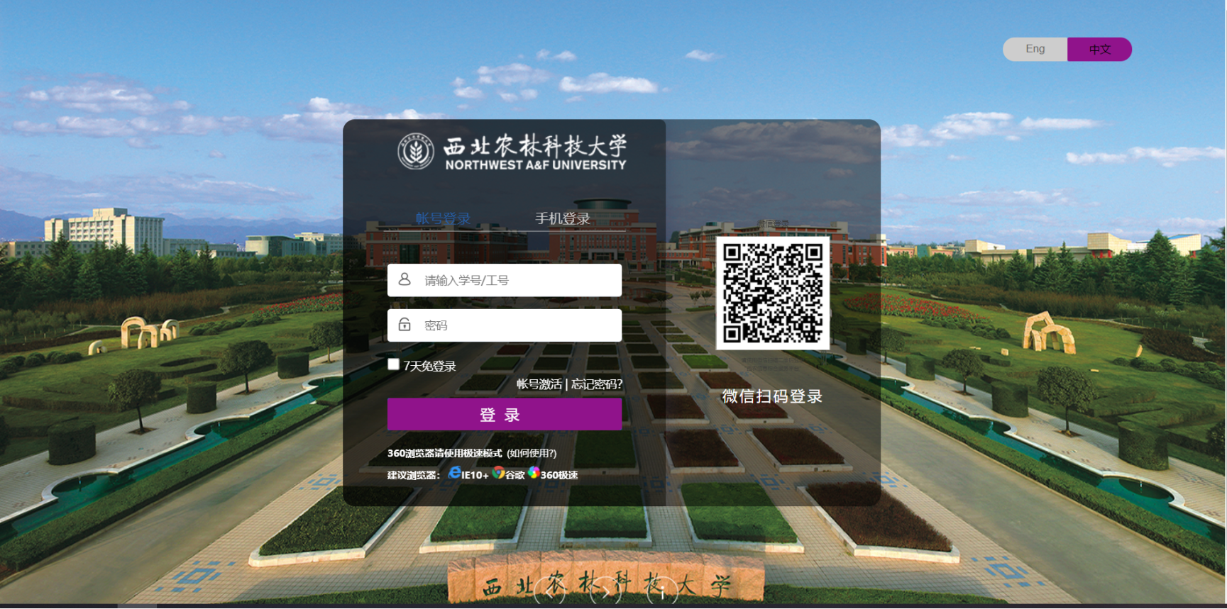 在IE浏览器地址栏输入: https://authserver.nwafu.edu.cn/authserver/login?service=https%3A%2F%2Fnewehall.nwafu.edu.cn%3A443%2Flogin%3Fservice%3Dhttps%3A%2F%2Fnewehall.nwafu.edu.cn%2FappShow%3FappId%3D6097462031814957