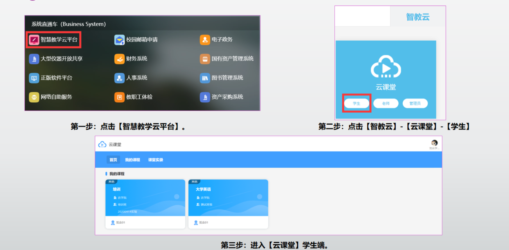 2、依次点击【智慧教学云平台】-【智教云】-云课堂【学生】,进入云课堂学生端