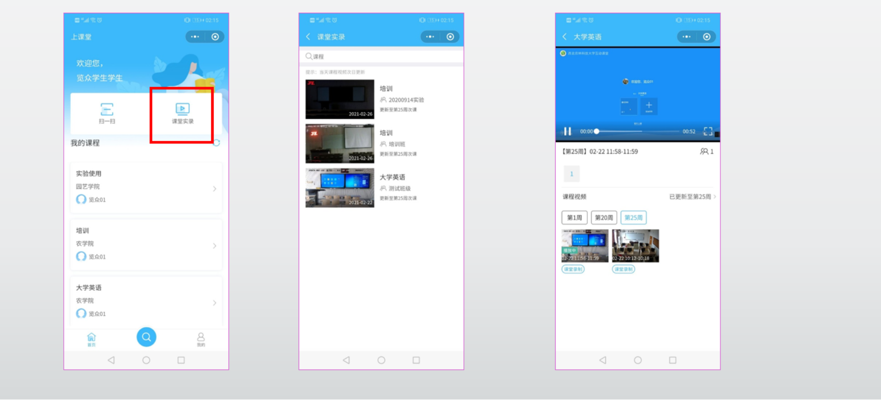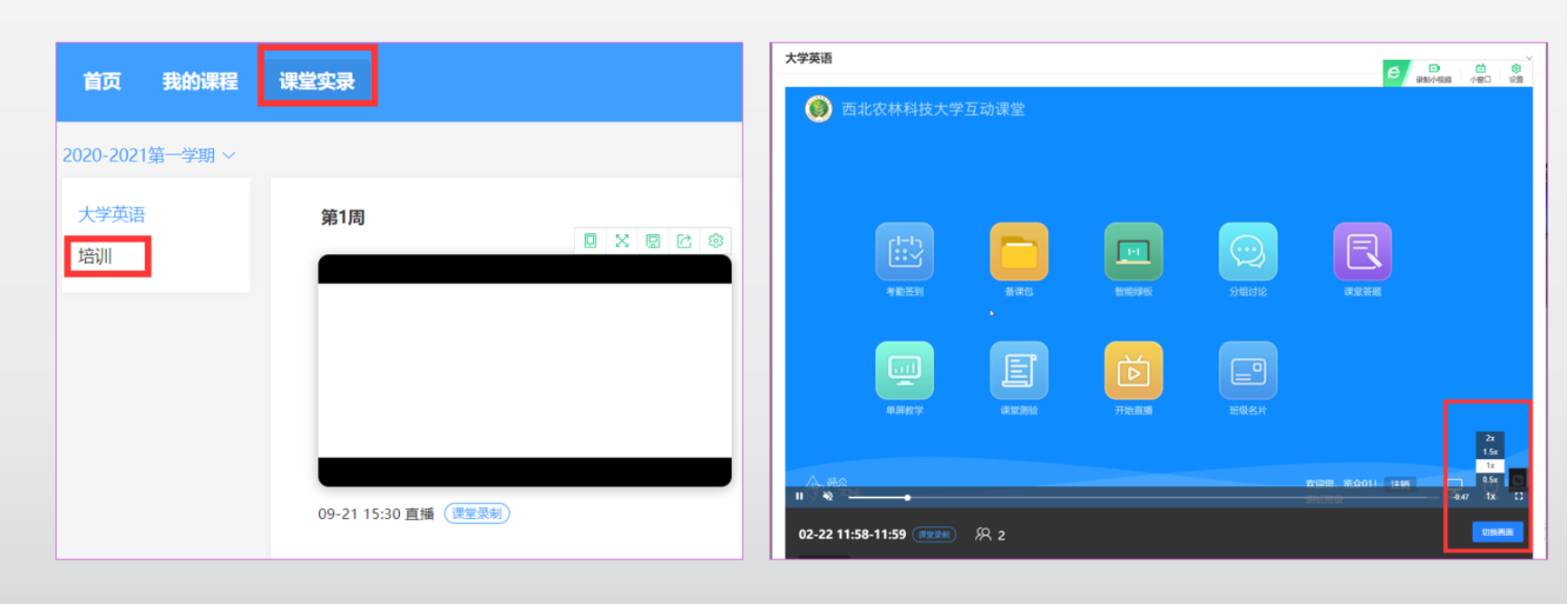3、课后,点击【课堂实录】按钮,查看教学录像。