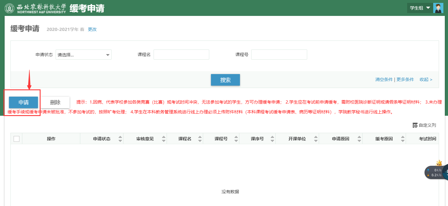 1.第一步:点击缓考申请;