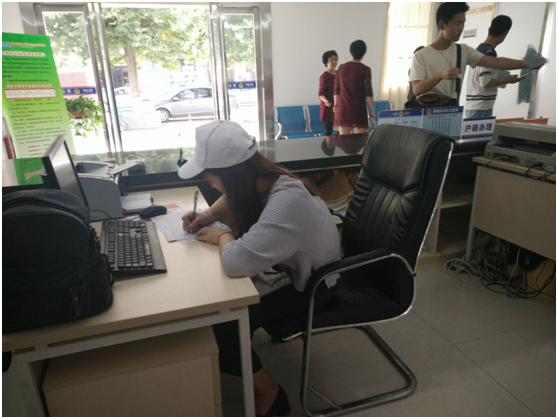 9月22日,我们田园使者一行人再次来到了社区帮助进行选民登记工作,由于常乐路社区下属区域较多且选民上交的材料不完全、缺少人数,所以我们在社区刘书记的带领下来到了派出所调查户口,查找有关资料并进行登记。我们到达派出所后,在跟所长进行简单的沟通说明此行的目的后,我们就来到了派出所户籍管理大厅的电脑上查找有关选民的资料信息。派出所根据国家和公民办理实务的需要分成两个办公大厅即刑事立案厅和民事厅,我们此行以调查户口为主,所以是在民事厅进行登记工作,由于我们对于警察同志的工作并不熟悉,所以开头的官网查找搜索工作都是由他们完成。