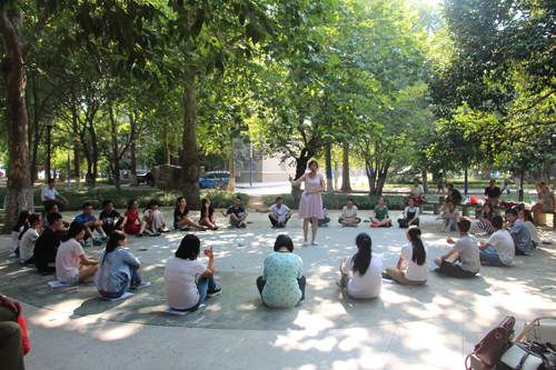 下午四点的白黄色暖光,穿过古朴三号楼前参天大树的遒劲身姿,透过错落有致的繁密枝叶,于一处“秘密花园”洒下一地斑驳碎影。8月30日下午,人文学院法学1502班一场别开生面的新生班会就在这个“秘密花园”中进行。